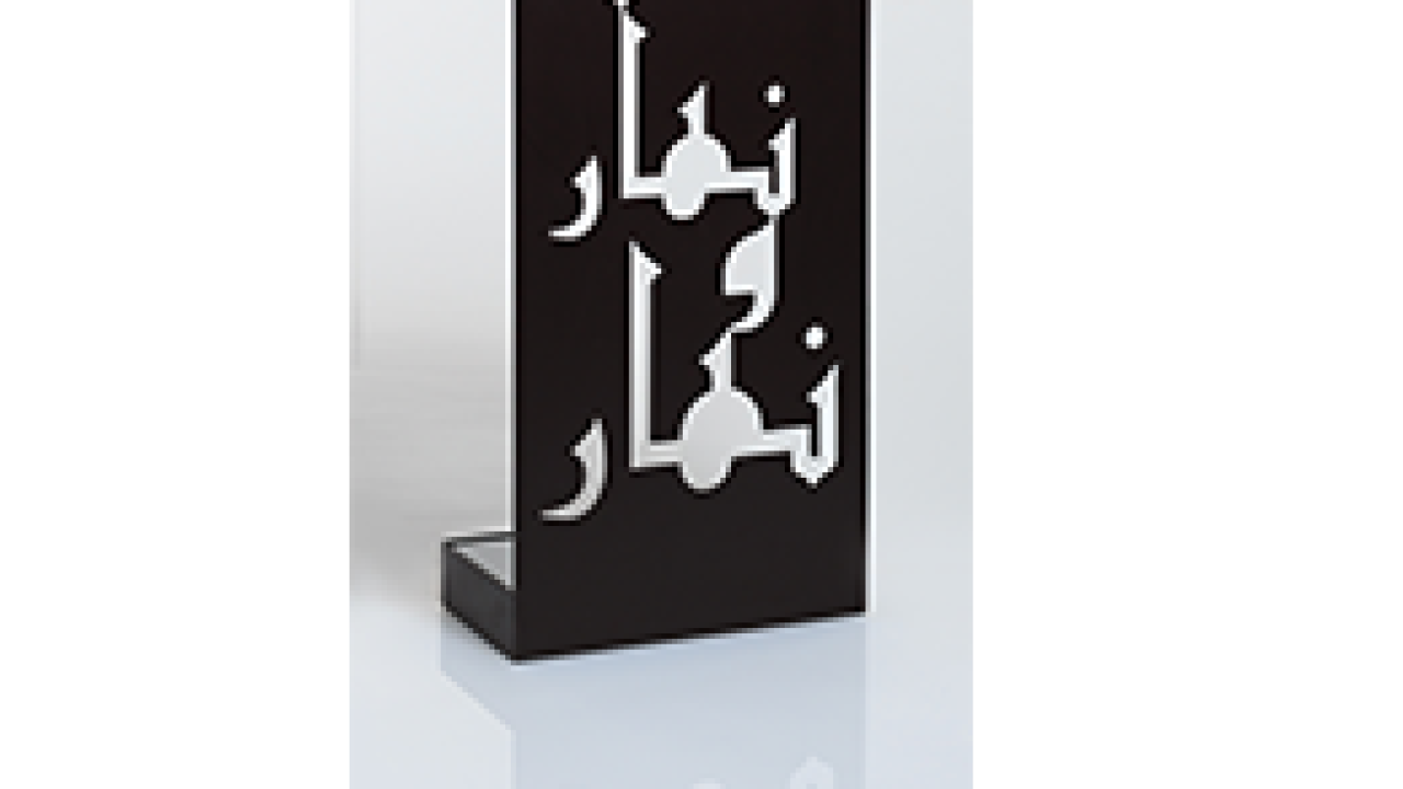 Sa dernière collection pour la Galerie H est basée sur le travail de la calligraphie et de l’écriture arabe, donnant forme à des expressions et proverbes marocains, à travers des pièces mêlant bois, marbre, métal et une pointe d’humour.