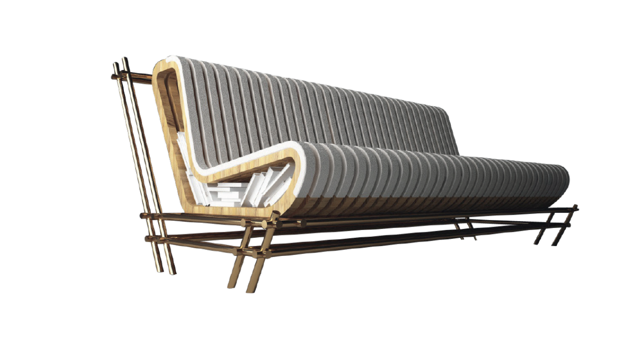 Amoureux du modernisme, Yassine n’hésite pas à défier les plus grands, en créant sa table Kandinsky, qui a connu un grand succès auprès de son public. La sophistication et la sobriété de ses travaux ne l’empêchent pas de s’inspirer de sa propre culture. Passant de la création d’objets virtuels à celle d’objets réels, en explorant sa culture et son environnement, il développe à partir de l’expression curviligne de l’artisanat marocain des créations aux formes géométriques simples.